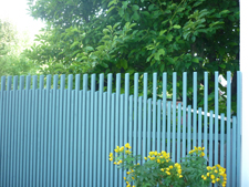 Leichte Holzkonstruktion als Sichtschutz zur Straße.